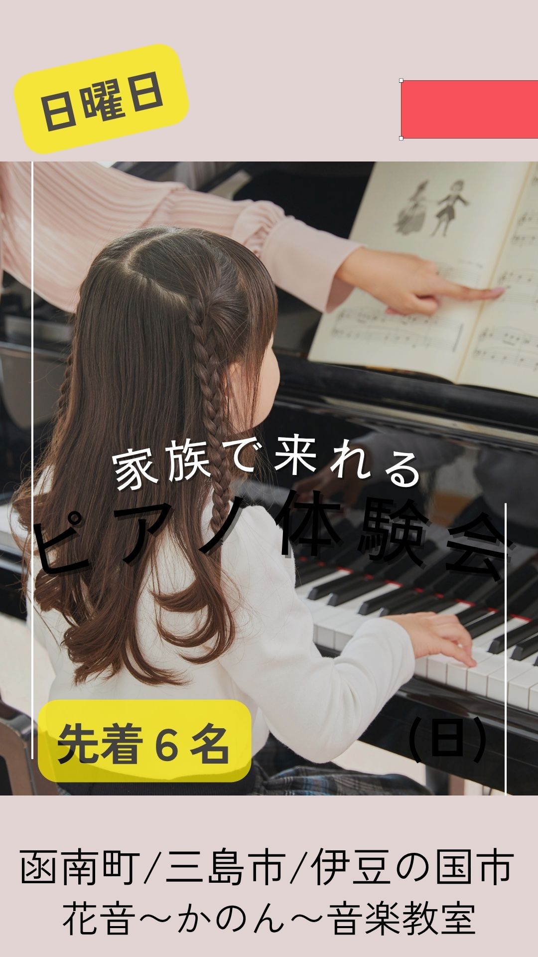 お気軽に、そして家族で来れる日曜日ピアノ体験会にぜひお越しください。